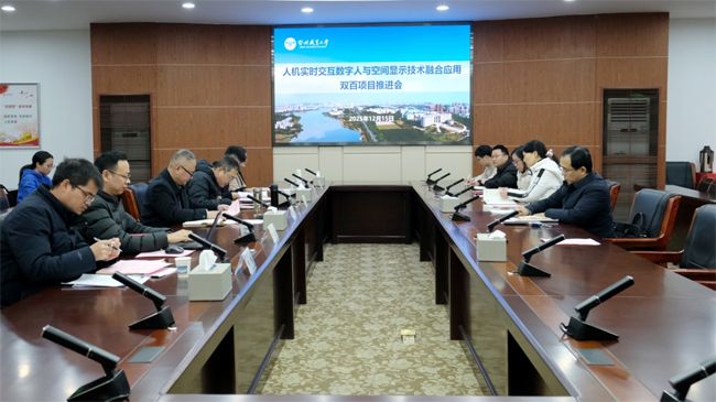 (记者 何建华)12月15日下午,人机实时交互数字人与空间显示技术融合应用“双百”项目推进会在鄂州职业大学召开。会议由鄂州职业大学牵头组织,北京大学武汉人工智能研究院、湖北莲花山人工智能研究院、市科技局、鄂城区科技发改局等单位相关负责人应邀出席。校长李梁军,校党委副书记、副校长高飞及学校科技处、信息工程学院负责人参会。