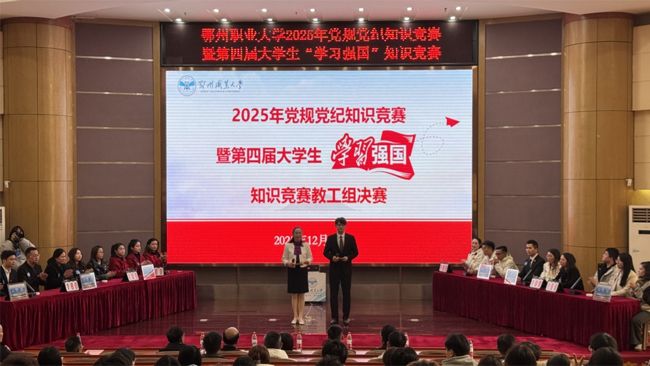 (学生记者 陈思言/文 李文涛、王德艳、夏胜林、王相博、张依瑞/摄)12月18日下午,鄂州职业大学纪委、党委宣传部联合举办的2025年党规党纪知识竞赛暨第四届大学生“学习强国”知识竞赛在求真楼学术报告厅顺利落下帷幕。校纪委书记严莉,副校长陈适、陈永红现场观赛并为获奖队伍颁奖,各院(部)师生代表共计200余人现场观赛。