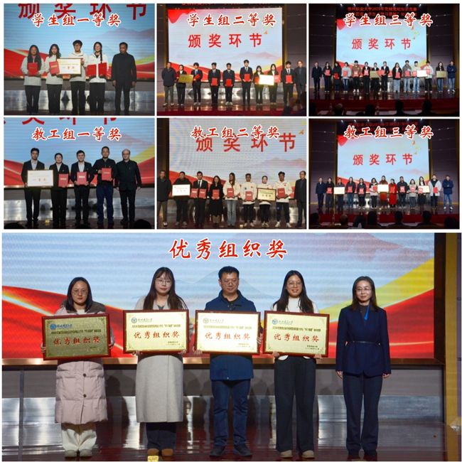 教工组方面,航空工程学院代表队荣获一等奖,机械工程学院、体育课部代表队获得二等奖,图书馆、艺术学院、信息工程学院代表队获得三等奖,马克思主义学院,机关第一、第二支部联合代表队荣获优秀组织奖。