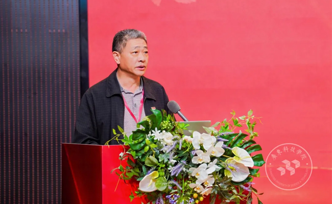 广东省教育厅二级巡视员廖荣辉在致辞中,代表省委教育工委、省教育厅对年会召开表示热烈祝贺,向长期致力于民办高校党建研究与实践的同仁致以衷心感谢。他指出,2025年作为“十四五”收官与教育强国建设推进的关键之年,省高校党建研究会民办院校分会在理论武装、课题研究、党务培训等方面成效显著,为全省党建工作贡献重要力量。结合2026年“十五五”开局与教育强省建设的奋进目标,他提出四点倡议:一要在深研党的创新理论、推进理论武装上持续深化;二要在总结党建实践经验、把握工作规律上不断提升;三要在聚焦现实突出问题、推动破解难题上下足功夫;四要在建强党建研究队伍、完善运作机制上汇聚合力。最后,他希望大家以饱满热情、昂扬斗志和务实作风,推出更多前瞻性、战略性、实践性的高水平党建研究成果,为提升高校党建质量、服务教育强国建设贡献智慧与力量。