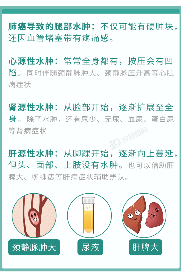 不过,引起腿部肿胀的原因还有很多,来自心脏、肾脏、肝脏等的疾病也爱折腾腿,但源头不同,水肿及伴随症状都有差别。