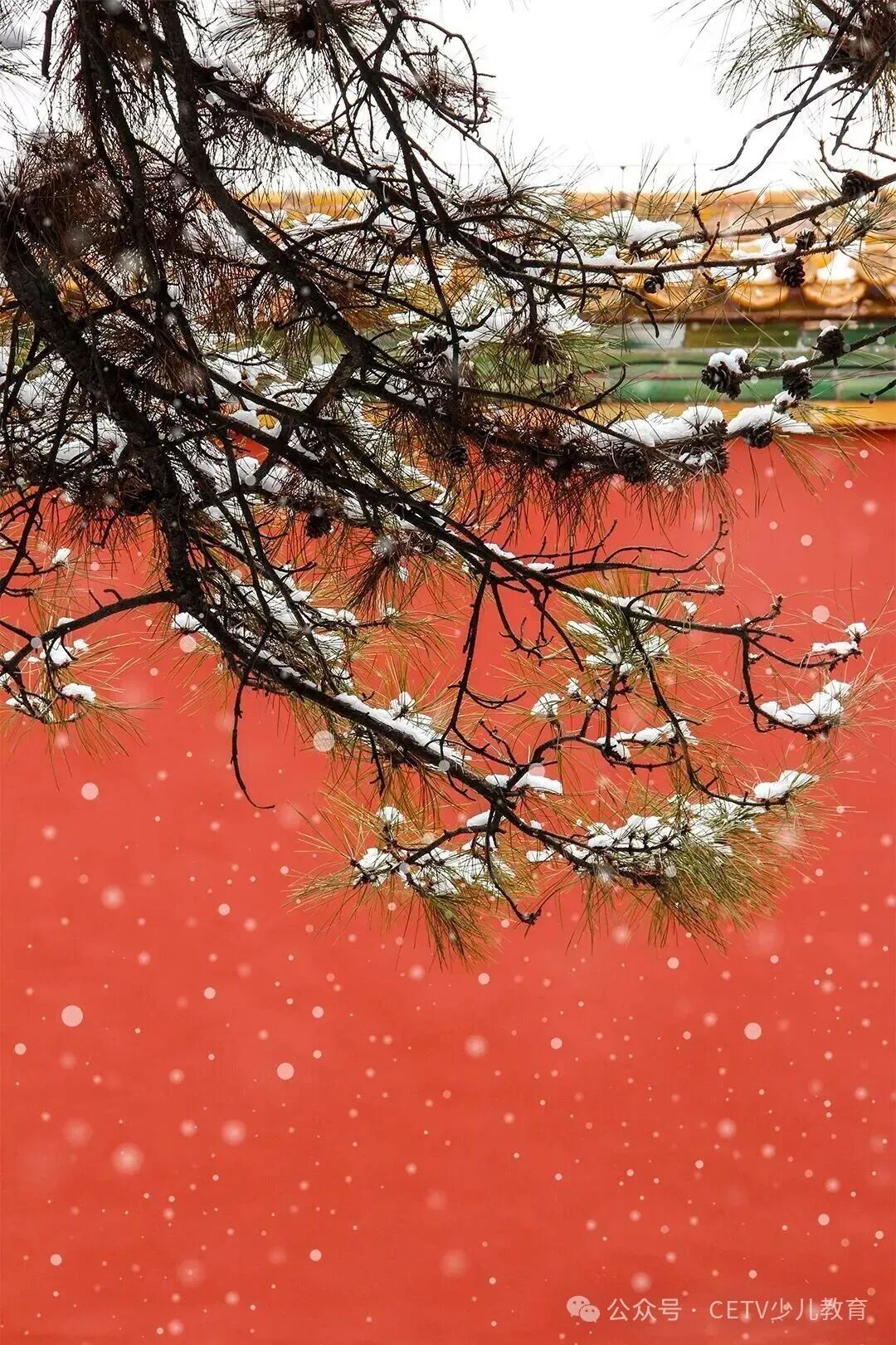 白雪为底,黄檐作线