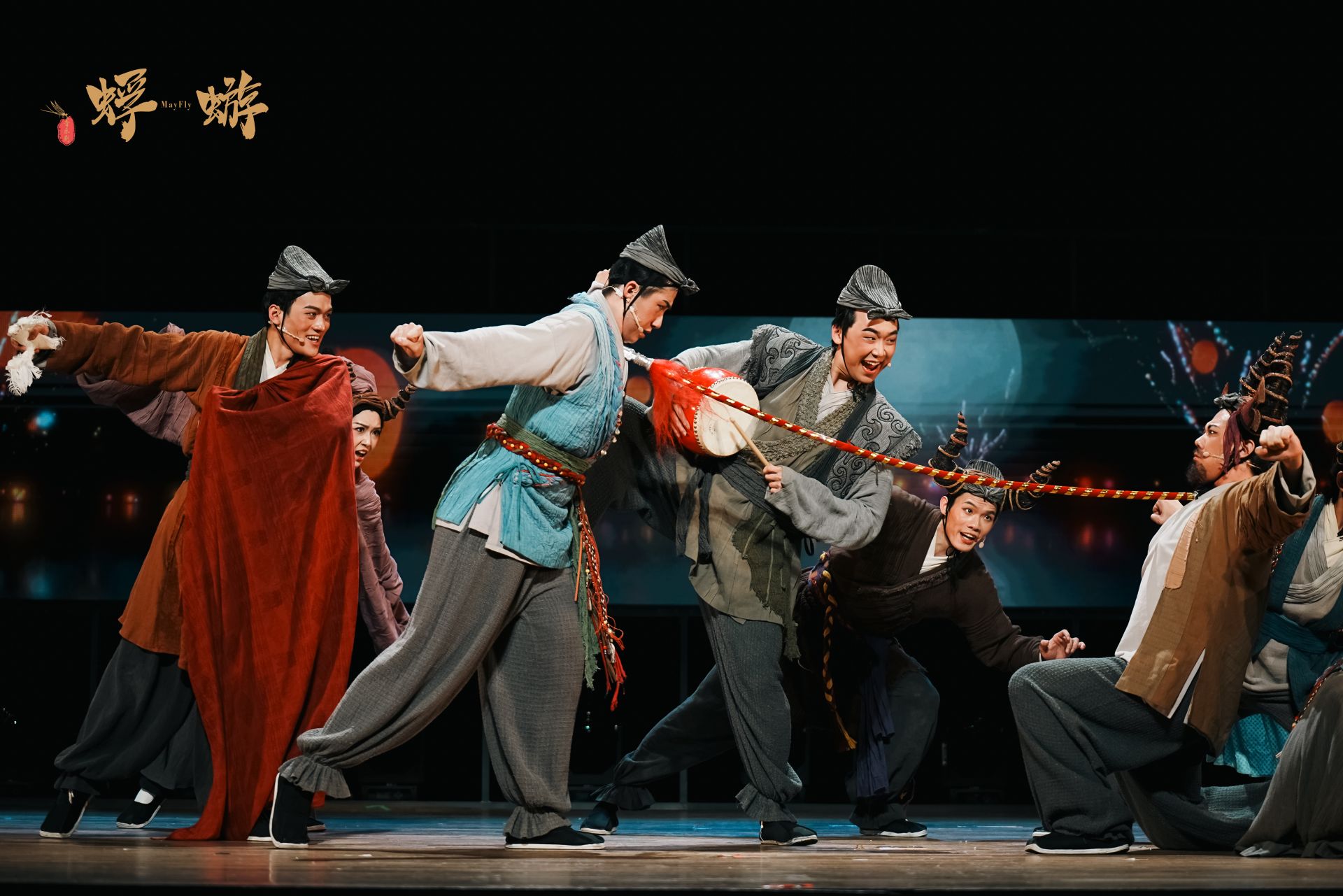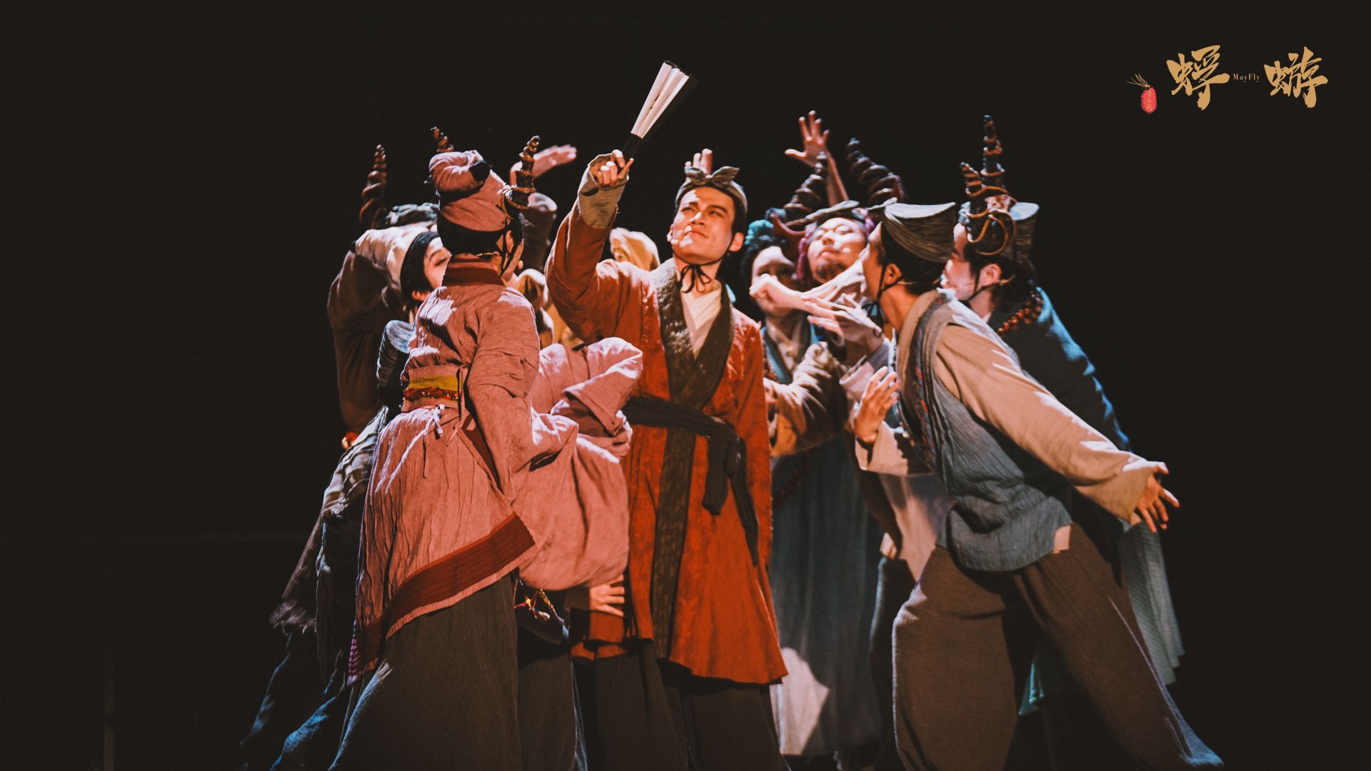 在人物塑造方面,《蜉蝣》采用多位演员分别诠释同一灵魂不同面相的方式,让角色在不同历史与情境中不断变形与生长。全剧采取“三幕三格”的结构,从百戏江湖到市井人生,再到朝堂权力的转场,既是空间与身份的变换,也是个体命运不断被推向边界的过程。演员在歌、舞、戏之间的频繁切换,让舞台成为一条流动的历史长河。