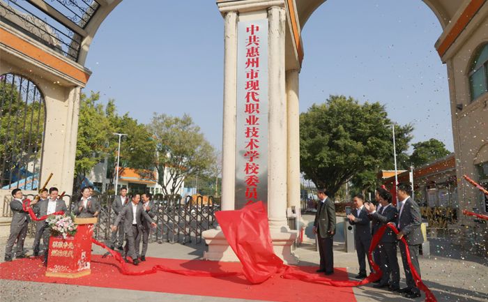 冬阳映辉,党旗飘扬。惠州市现代职业技术学校南大门的牌匾在暖阳下熠熠生辉,近百名党员与教师代表共同见证了这一历史性时刻——红色绸布缓缓落下,“中共惠州市现代职业技术学校委员会”正式揭牌。作为广东省首个民办中职学校党委,其诞生不仅是学校党建工作从“萌芽” 到“茁壮”的跨越,更是新时代民办职业教育坚持党的领导、强化政治引领的生动实践,为学校高质量发展注入了强劲的“红色引擎”。