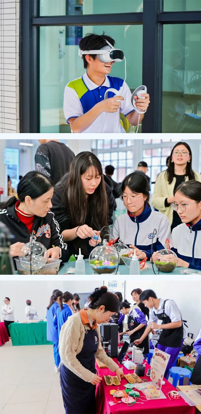 此外,活动联动广州市旅游商务职业学校、财经商贸职业学校、轻工职业学校、纺织服装学校、城市建设职业学校、医药职业学校等多所学校职业体验中心,同步推出中华茶艺、粤式刀工、VR粤商文化馆、AI智能试衣镜、桥梁模型制作、中医理疗实操等丰富体验内容,兼顾传统技艺与现代科技,覆盖文旅、商贸、时尚、建筑、医药等多个行业。通过特色课程体验拓宽学子职业视野,打破“重普高、轻职教”的固有认知,让学生直观感受职业教育与产业需求的紧密衔接;依托动手实践、场景模拟等互动形式,引导学生发现自身兴趣与潜在能力,建立“职业与个人特质匹配”的思考逻辑;在与行业场景、专家的近距离接触中,培育学生团队协作、责任担当等核心职业素养,增强职业认同感;同时通过课后反思与专业指导,帮助学子搭建生涯规划框架,形成理性开放的升学与职业发展观念,实现普通教育与职业发展的有效衔接。