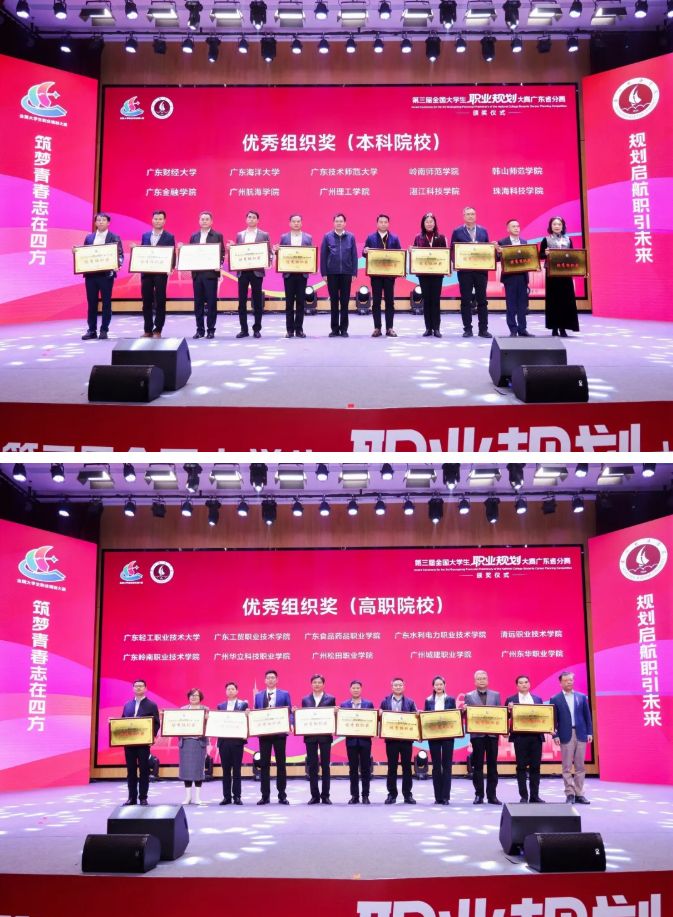 广州航海学院在本届比赛中,就业赛道获得金奖2项;成长赛道获金奖1项、银奖1项;课程教学赛道获银奖1项,学校荣获高校“优秀组织奖”,实现了学校在职业规划大赛省赛中金奖0的突破,取得历史最好成绩。