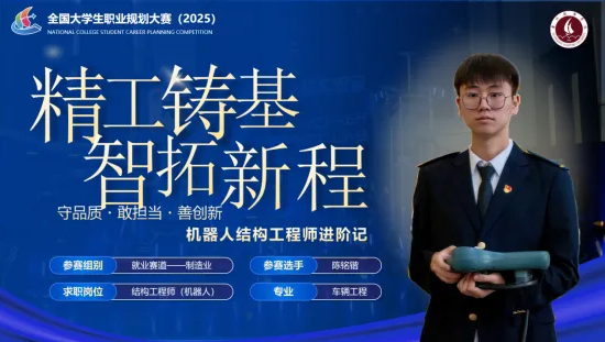 参赛作品是“精工铸基,智拓新程——机器人结构工程师进阶记”,参赛口号是“于潮头处立,向冰封处行”。