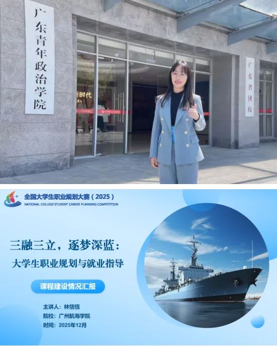 参赛课程汇报主题为:三融三立,逐梦深蓝:大学生职业规划与就业指导课程建设情况汇报。