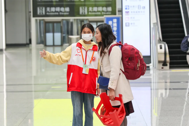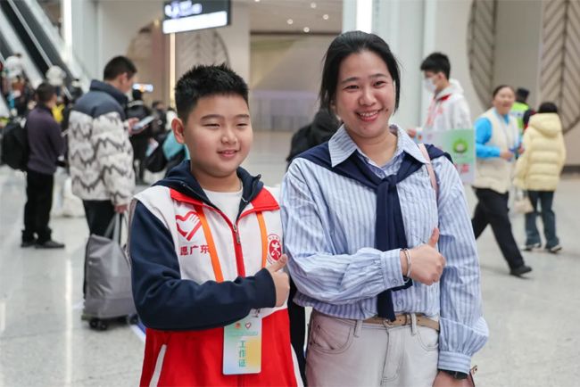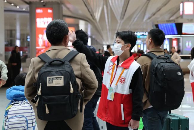 休息间隙,别的志愿者稍作休整时,他还会安静坐在角落认真完成寒假作业,只为让父母少操心,这份懂事与责任心,让身边的志愿者们纷纷称赞。“能帮到回家的人,我觉得特别开心,比看电视有意思多了。”周翊轩的话语简单纯粹,却道出了志愿服务的真谛,也展现了新时代青少年的良好精神风貌。他还曾用课堂上学到的英语为外国旅客指路,真切体会到知识的价值与服务的意义,这份收获也让他更加坚定了奉献的初心。