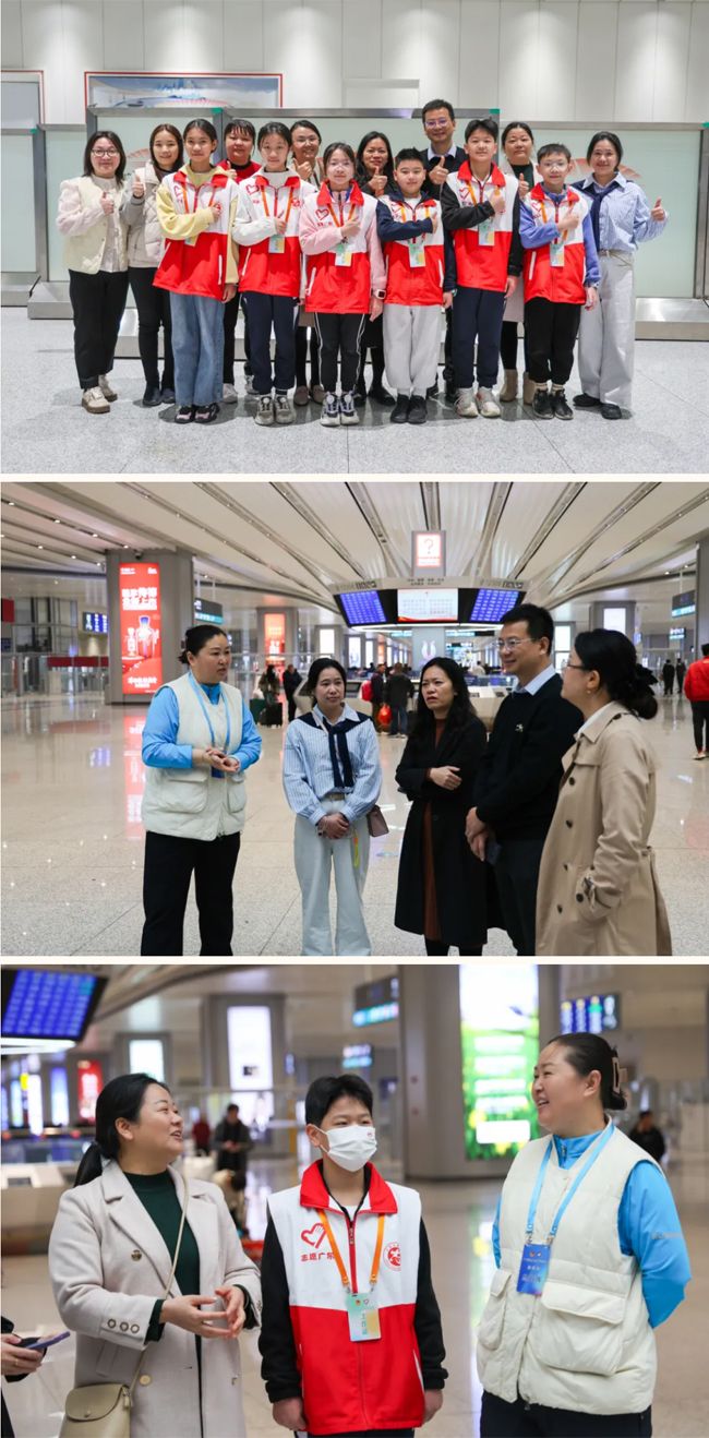 近日,广州市白云区金沙小学周翊轩同学在白云站开展春运志愿服务的视频走红网络,网友们纷纷为这位12岁少年的懂事与担当点赞,其事迹在学校师生中也引发强烈反响。为传递温暖与鼓励,学校老师、同学及家长代表携手媒体记者,悄悄策划了一场温暖的“突袭”,走进白云站为正埋头服务的周翊轩送上惊喜与关怀,用实际行动诠释“学习在课堂,奉献在社会”的实践育人理念,谱写了一曲少年有志、师生同心、家校共育的暖心乐章。