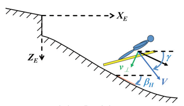 着陆冲击的大小,取决于 飞行方向与坡面方向的匹配程度。当 γ 和 βH 越接近,sin(γ - βH) 就越小,着陆速度就越小,冲击就越柔和。