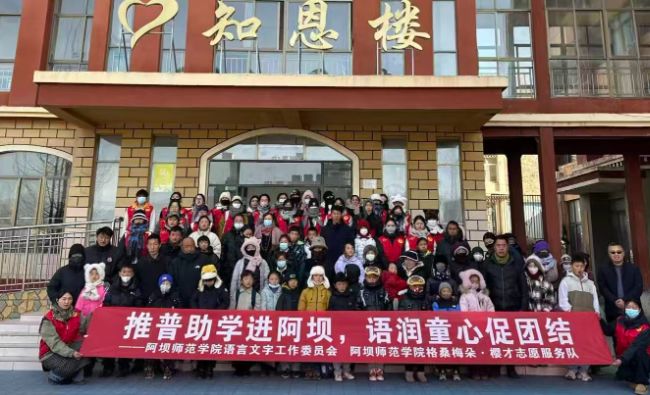1月,阿坝师范学院“格桑梅朵·樱才”志愿服务队的13名师生,放弃寒假休息,跨越海拔三千米,在阿坝县的雪域高原开启了为期七天的推普支教之旅。