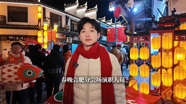 位于合肥肥西的三河古镇,是小南河畔的明珠,也是此次春晚合肥分会场的重要取景地。合肥职业技术学院学子在此承担了极具徽风皖韵的“鱼灯巡游”拍摄任务。时值寒冬腊月,同学们佩戴校团委统一采购的围巾、手套,手持数斤重的鱼灯,一遍遍穿行于古镇的古街古巷、青石板路。为了呈现“鱼游古镇、千灯迎春”的唯美画卷,他们无畏严寒,通宵达旦地排练。寒风冻僵了手指,却冻不住他们眼中对完美的追求。当一盏盏鱼灯亮起,光影在斑驳的粉墙黛瓦间流动,青春的身影与千年的文脉交相辉映,将安徽独特的非遗魅力生动地传递给全球观众。