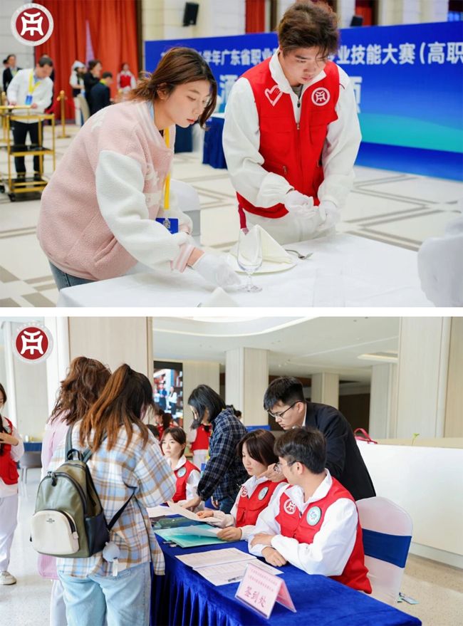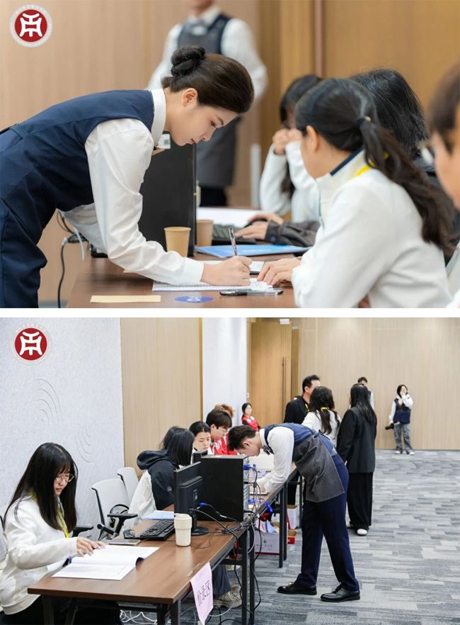 在学校整体部署下,酒店管理与厨艺学院充分发挥专业优势,将赛事服务系统深度融入教学实践。各专业师生经过前期扎实培训,在大赛期间协同发力,呈现出专业且优质的服务。据统计,共有200人次的学生志愿者投入服务,他们活跃在报到区、候赛区、检录区、比赛现场及休息区,以规范、细致、热情的微笑服务,展现出学校实践教学的扎实素养,也凸显了学校育人模式的真实成效。