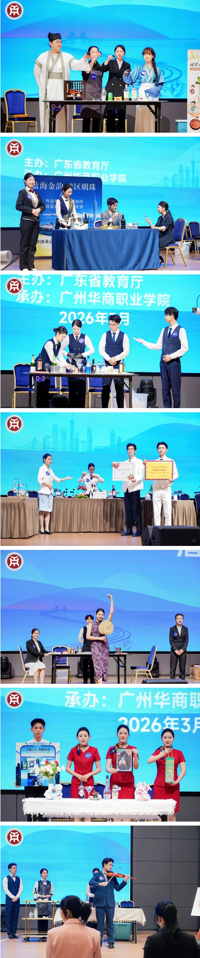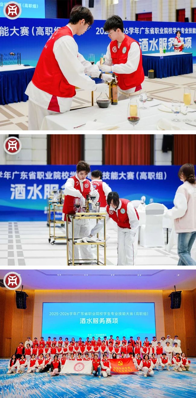 3月9日至11日,2025-2026学年广东省职业院校学生专业技能大赛(高职组)酒水服务赛项在广州华商职业学院举办。来自全省各职业院校27支参赛队伍、108名参赛选手一决高下,同台炫技比拼“酒水服务”水平。
