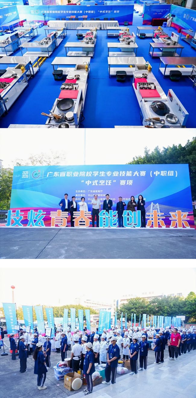 炉气升腾,点亮青春的色彩;食材交融,散发传承的芬芳。3月15日,2025-2026学年广东省职业院校学生技能大赛中职组“中式烹饪”赛项在中山市现代职业技术学校举行。本次大赛由广东省教育厅主办,中山市教育和体育局承办,中山市职业教育发展中心、中山市现代职业技术学校协办,共吸引了来自全省各地54支代表队的216名选手参赛。