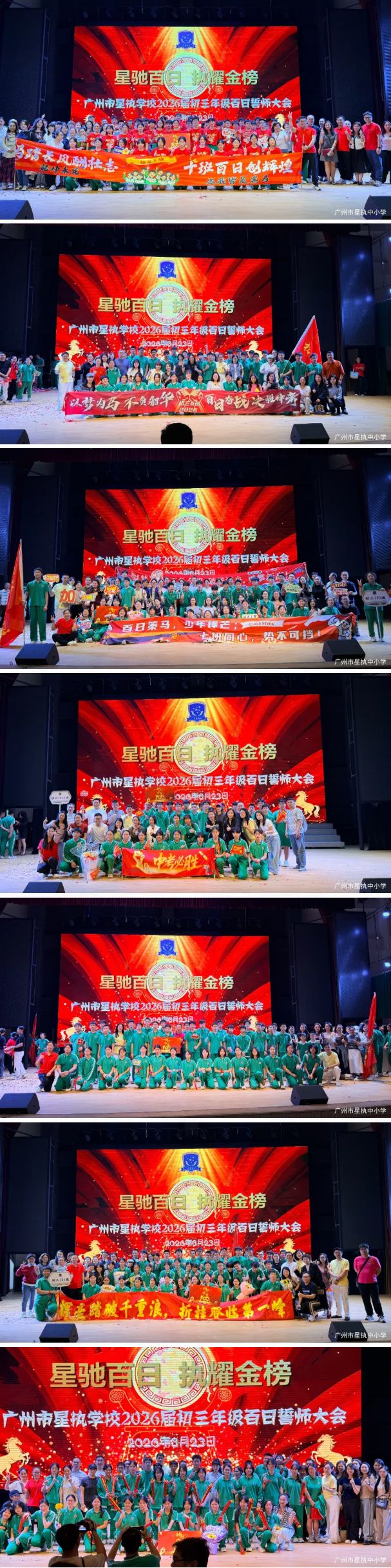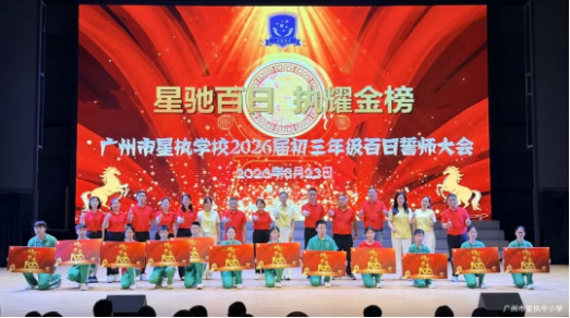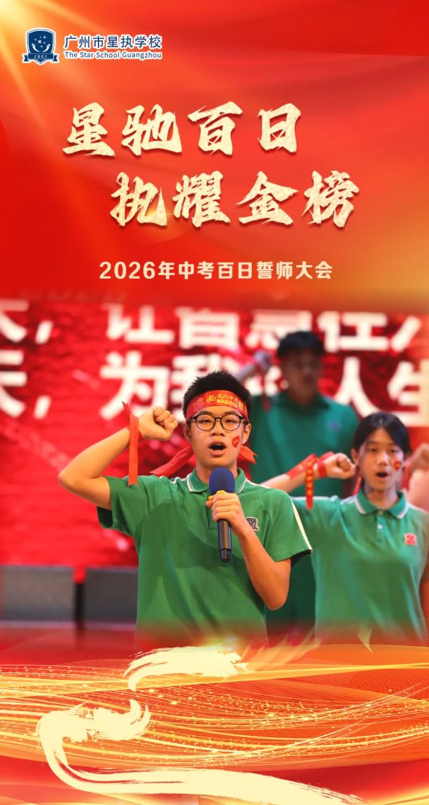 从晨读的琅琅书声,到晚自习的点点灯光,我们终于站在这场青春战役的关键节点——中考倒计时100天。3月23日,“星驰百日 执耀金榜”初三百日誓师大会在广州市星执学校演艺厅隆重举行。学校行政领导、初三全体师生及家长代表齐聚一堂,在铿锵战鼓声中,共同见证初三学子出征中考的燃情时刻。