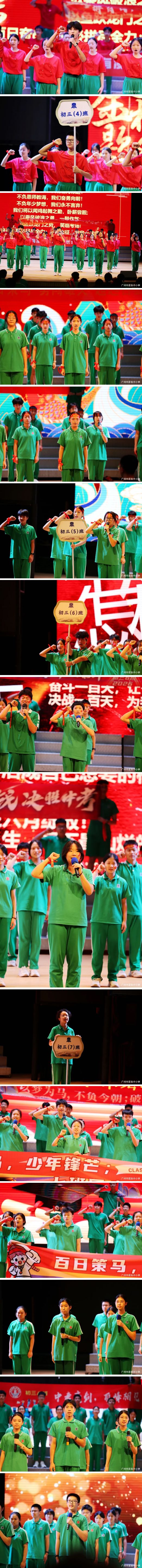 鼓声方歇,各班班级代表依次登台,进行庄严的誓师展示。他们用最洪亮的声音喊出本班的冲刺誓言,一句句誓词铿锵有力、响彻云霄。那是舍我其谁的锋芒锐气,是志在必得的磅礴底气,是少年心事当拏云的豪情壮志。这不仅是对梦想的庄严宣告,是对未来的坚定奔赴,更是对滚烫青春最郑重的承诺 —— 以百日为阶,攀理想之巅;以笔为刃,斩前路荆棘。