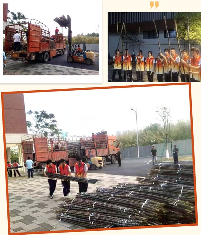3月25日傍晚,当夕阳的余晖洒满校园,一场“甜蜜任务”悄然启动。广州市技师学院科教城校区和黄石校区迎来了满载甘蔗的货车。受广州市技师学院党委委托,副院长丁红浩、陈凤贞赴现场进行指挥。工会、总务处、安保中心、学工处、团委、值班老师、物业人员、安保人员、食堂员工及学生志愿者们迅速集结,化身“甜蜜搬运工”。历经近四个小时的奋战,二十余吨新鲜甘蔗被安全、整齐地码放在指定位置。为确保三个校区师生都能共享这份甜蜜,次日,南沙校区的甘蔗也通过交通车顺利分运到位。这场从田间到校园的“甜蜜接力”,凝聚了无数人的汗水与付出,也彰显了市技人“有用立身”的实干担当。