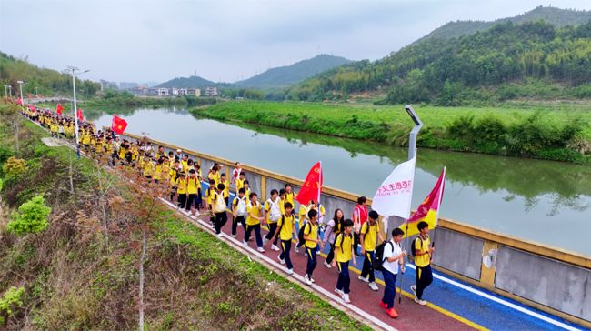 本次活动全程25公里,精心复刻长征征程,设置瑞金出发、遵义会议、四渡赤水、巧渡金沙江、飞夺泸定桥、雪山草地、会宁大会师七大主题打卡点,返程设置新征程系列打卡点,形成“重走长征路——感悟革命魂——开启新征程”的完整育人链条,让学生在徒步中沉浸式感悟长征精神。