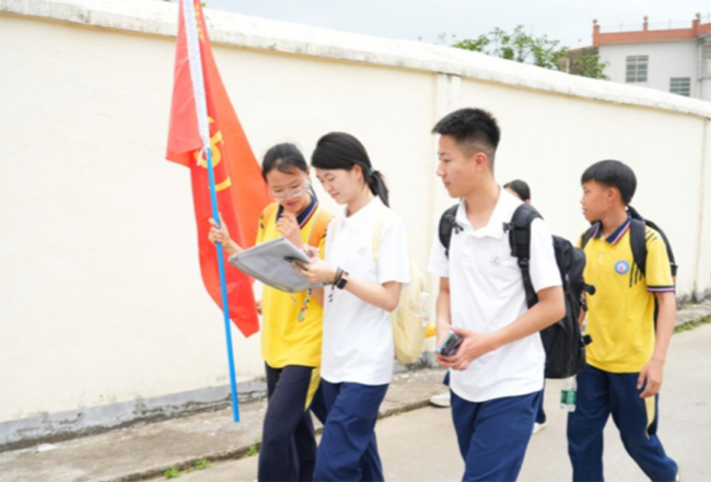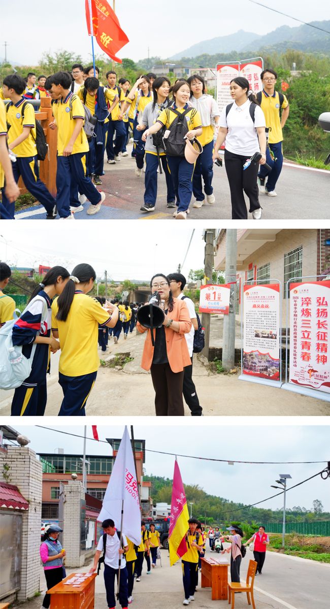 本次活动突破校际壁垒,梅坑中学、回龙中学部分师生约100余人应邀参与。三校学子并肩徒步、互励互助,在“瑞金出发”“四渡赤水”“巧渡金沙江”“雪山草地”等七大主题打卡点共同打卡,携手完成全程25公里挑战。