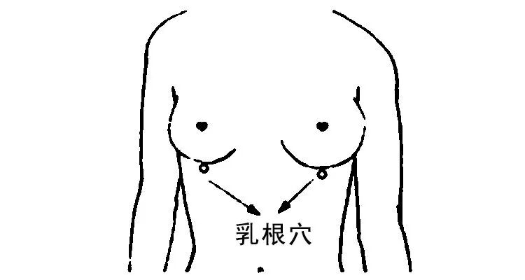 位于胸部,乳头正下方,乳房根部,第5肋间隙(顺着乳头往下摸,到乳房最底部的凹陷处)。