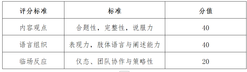 比赛为以中文辩论、思辨答题形式,选手需充分理解思辨精神与辩论规则,以口头表达的形式,系统性地传递信息、表达观点、抒发情感。来自全国多地的优秀辩论教师、教研员、国际华语辩论专家、教授及传播学专家等组成评审团队对选手综合表现进行评价打分。