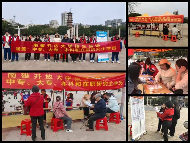 为深入助力“百千万工程”落地见效,服务地方经济社会高质量发展,全面提升南雄市民学历层次与综合素养,南雄开放大学在三影塔广场、小岛社区、公园社区、乡镇、工园区企业等多地常态化开展招生咨询活动和终身学习 平台宣传推广工作,面向群众详细介绍学校(含校外教学点)构建的“中专—大专—本科—在职研究生”一体化升学通道,为不同学习需求的市民搭建起贯通式学历提升桥梁;同时,通过现场讲解、一对一实操指导等便民服务,向群众全面介绍平台的优质课程资源与便捷使用功能,重点聚焦老年群体等特殊人群的学习需求,提供精准化、暖心化指导服务,有效提升了学习 平台的知晓度与使用率,在全市范围内营造出全民学习、终身学习的浓厚社会氛围。