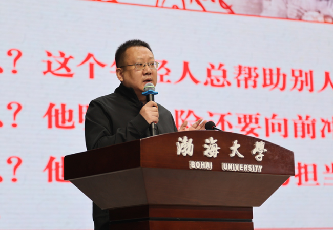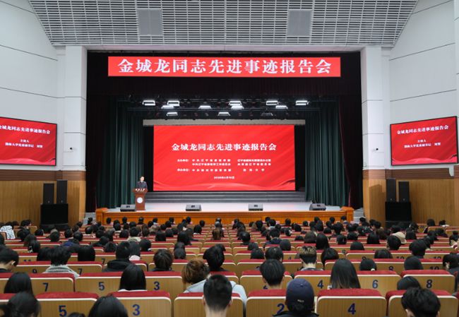 4月16日,金城龙同志先进事迹报告会在渤海大学举办。本次报告会由中共辽宁省委宣传部、辽宁省精神文明建设办公室、中共辽宁省委教育工作委员会、共青团辽宁省委员会主办,中共锦州市委宣传部、渤海大学承办。锦州市委副书记、宣传部部长汪立坤,锦州市委宣传部分管日常工作的副部长、辽沈战役纪念馆党委书记、馆长刘晓光,渤海大学党委书记丛茂国,党委副书记、校长赵 建 国和在锦校领导出席报告会。来自锦州市机关事业单位代表、企业代表、基层社区(村)工作者代表,以及在锦各高校师生代表共计600余人齐聚现场,共同聆听英雄事迹,感悟榜样力量,接受深刻的精神洗礼。渤海大学党委副书记刘贺主持报告会。