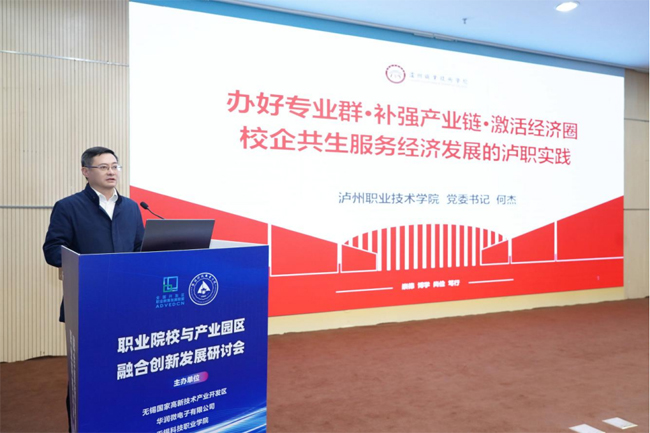 他表示,面向未来,无锡高新区将以更大决心、更强力度、更实举措,全面深化产教融合、科教融汇,奋力书写区校协同、共生共荣的崭新篇章:着力构建更紧密的产教融合共同体,放大国家级集成电路产教联合体辐射效应,推动产业链、创新链、教育链、人才链深度贯通;着力打造更高能级的科教融汇策源地,深化高新区与高校“双高协同”省级试点,构建产教融合、科教融汇发展新格局;着力建设更具特色的产才实训新高地,持续擦亮人才实训特色品牌,以高素质技术技能人才激活产业高质量发展新动能。他期待,本次研讨会的丰硕成果,能为无锡市、无锡高新区,乃至全省、全国深化产教融合、推进区校共生发展提供有力借鉴、注入强劲动力。