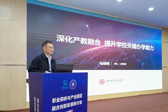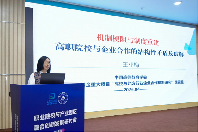 全国开发区职业教育发展联盟理事长、无锡科技职业学院原校长孙兴洋与中国高等教育学会职业技术教育分会副理事长、四川省职业技术教育学会会长张蕴启共同主持专家报告环节。中国高等教育学会职业技术教育分会理事长周建松作题为《深入实施立德树人工程,努力把立德树人根本任务落到实处》的报告,国家教育行政学院研究员、教授邢晖作题为《职教发展新高度与产教融合高质量》的报告,北京外国语大学教授、天津大学职业技术教育研究所所长孙善学作题为《产教融合的理论认识与实践思考》的报告,深圳职业技术大学原副校长马晓明作题为《深化产教融合 提升学校关键办学能力》的报告,《中国高教研究》主编王小梅作题为《机制梗阻与制度重建——高职院校校企合作的结构性矛盾与破解》的报告。这些报告紧扣新时代职业教育高质量发展的核心命题,围绕立德树人工程实施、产教融合理论创新、关键办学能力提升、校企合作制度重构等重大议题,系统梳理了政策逻辑、理论逻辑与实践逻辑,为职业院校深化改革、服务区域发展提供了具有前瞻性和实操性的学术引领与行动方案。